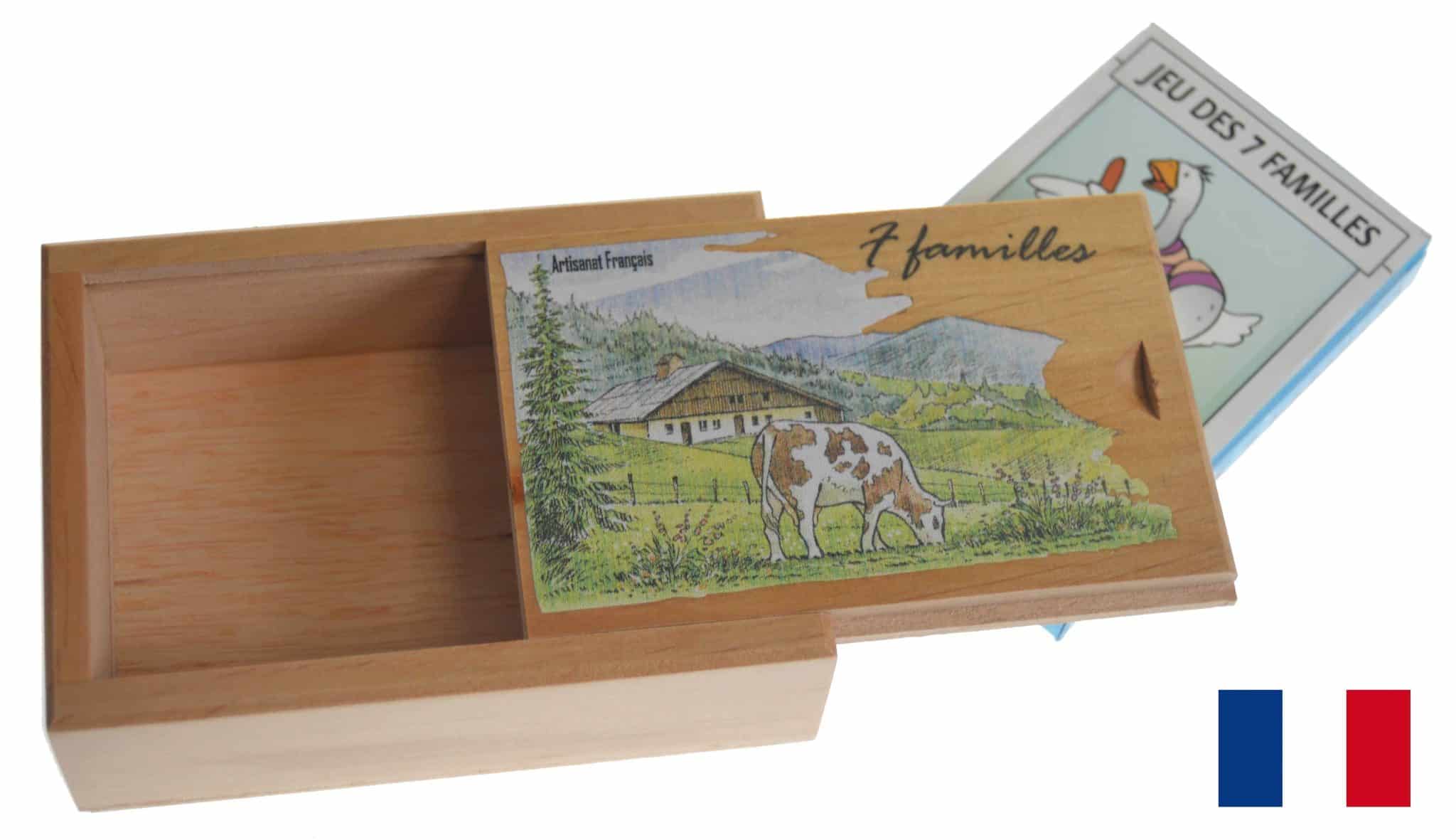boite 7 familles avec jeu en aulne vernis décor M1 76 x 110 Hauteur 35 mm