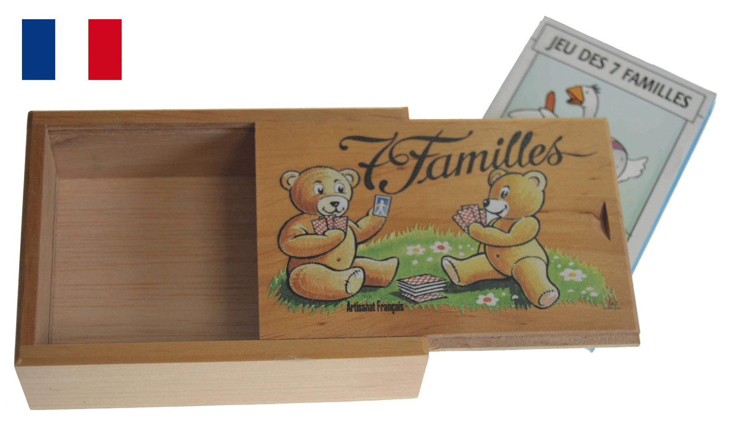 boite 7 familles avec jeu en aulne vernis décor OURSON 76 x 110 Hauteur 35 mm