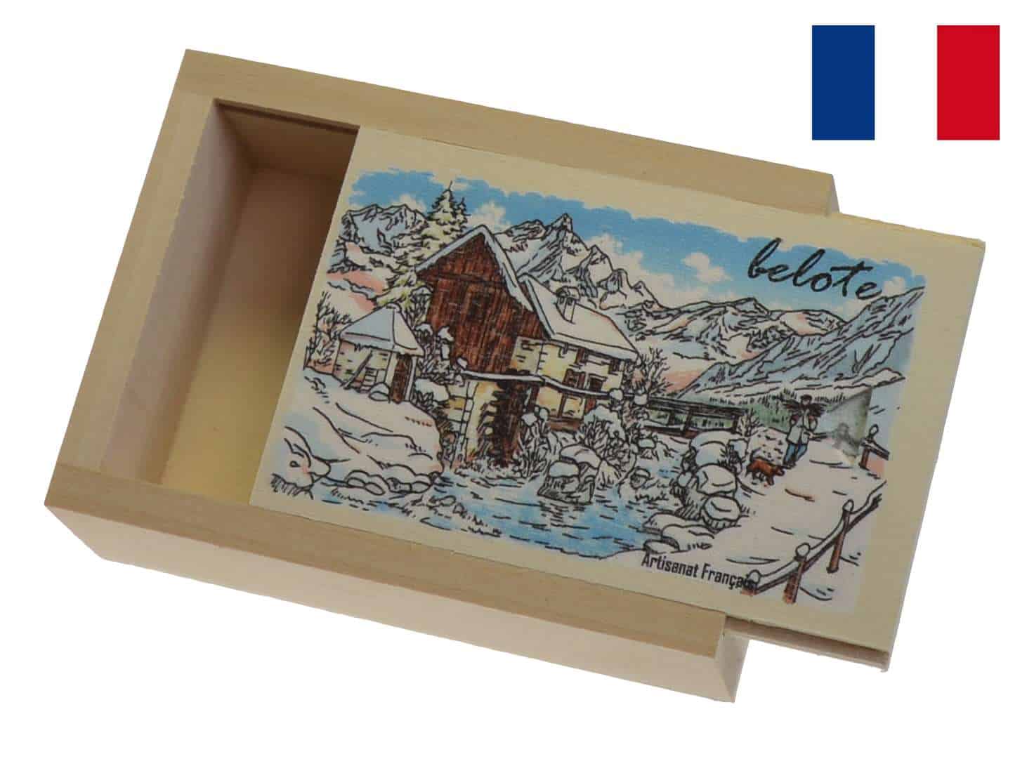 boîte à cartes en tilleul non vernis décorée vide 80 x 110 Hauteur 35 mm décor Neige 54