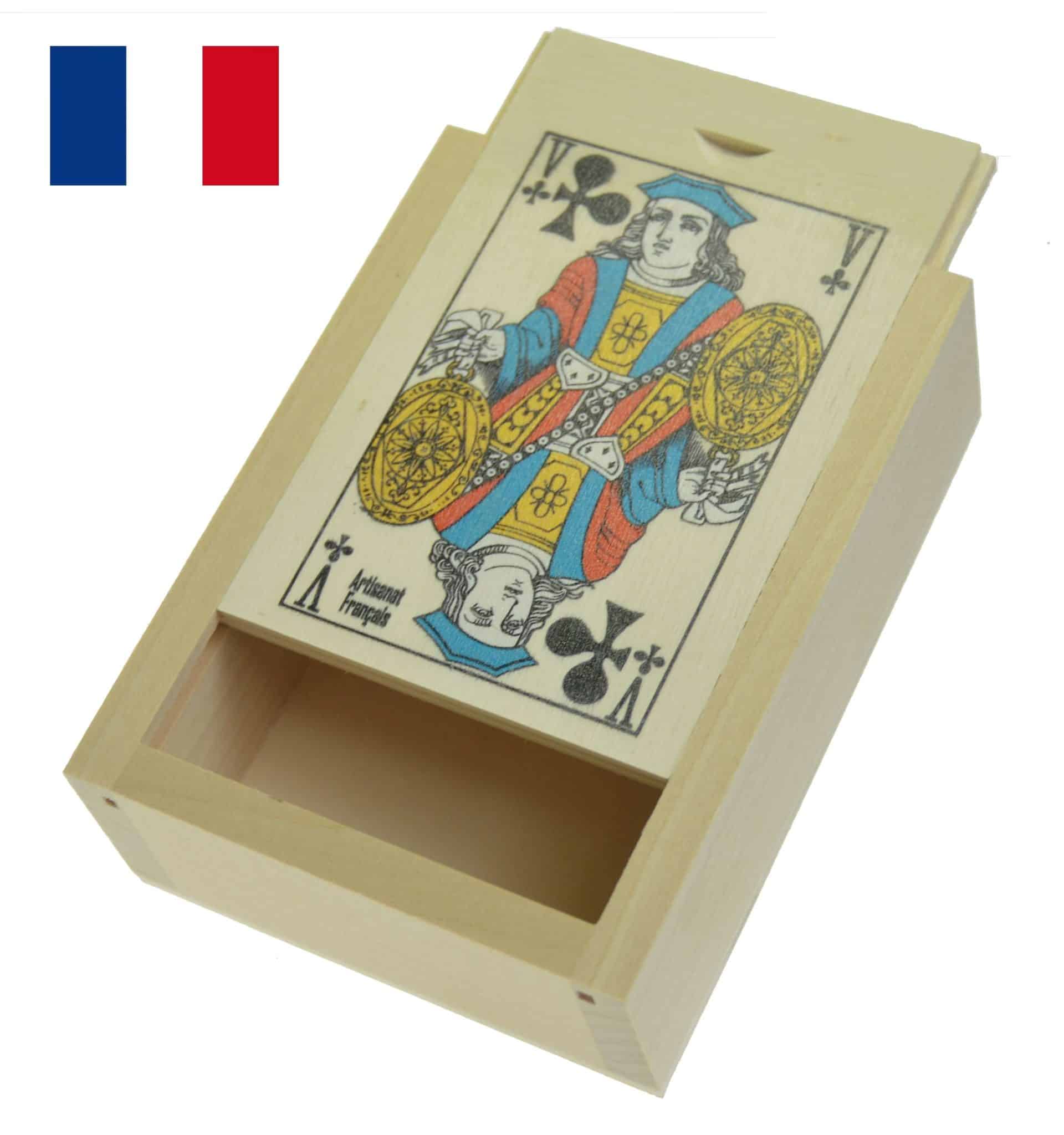 boîte à cartes en tilleul non vernis décorée vide 80 x 110 Hauteur 35 mm décor VALET