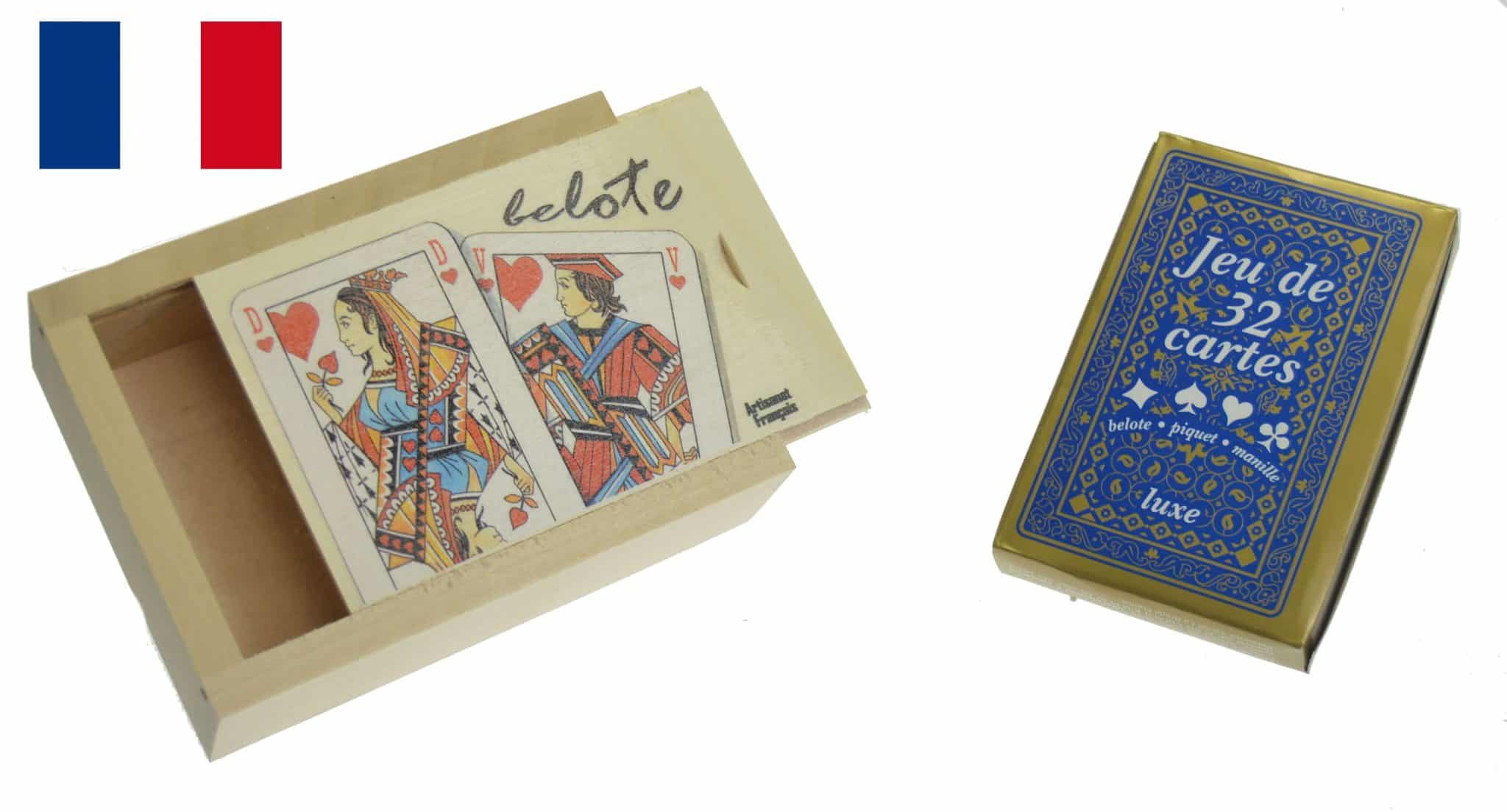 openboite à cartes tilleul naturel décorée + jeu 32 C 2c