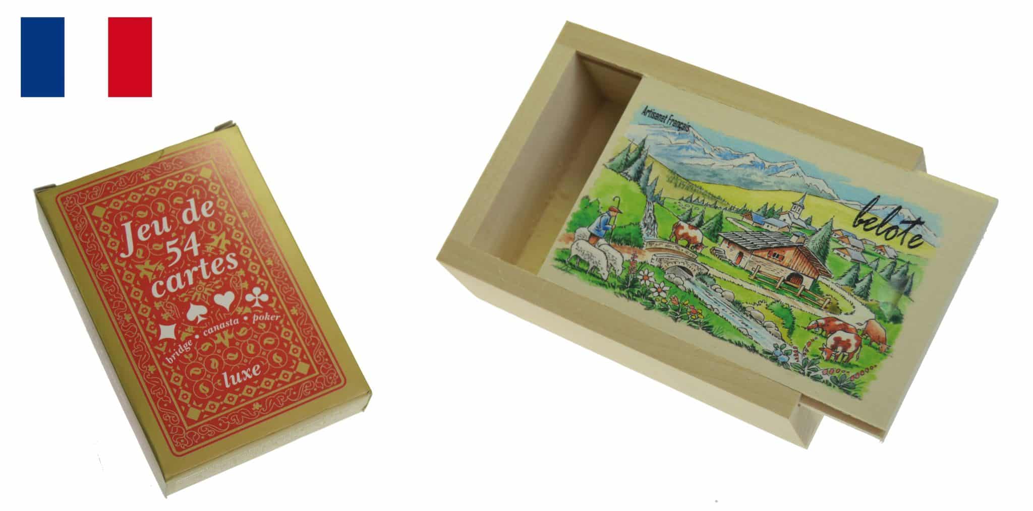 openboite à cartes tilleul naturel décorée + jeu 54 C M2