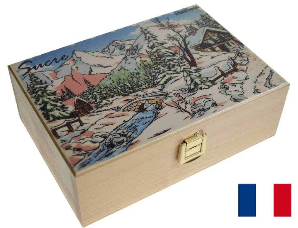 boîte à sucre vernis décorée en tilleul, 200 x 140 x 64 mm motifs “N6”
