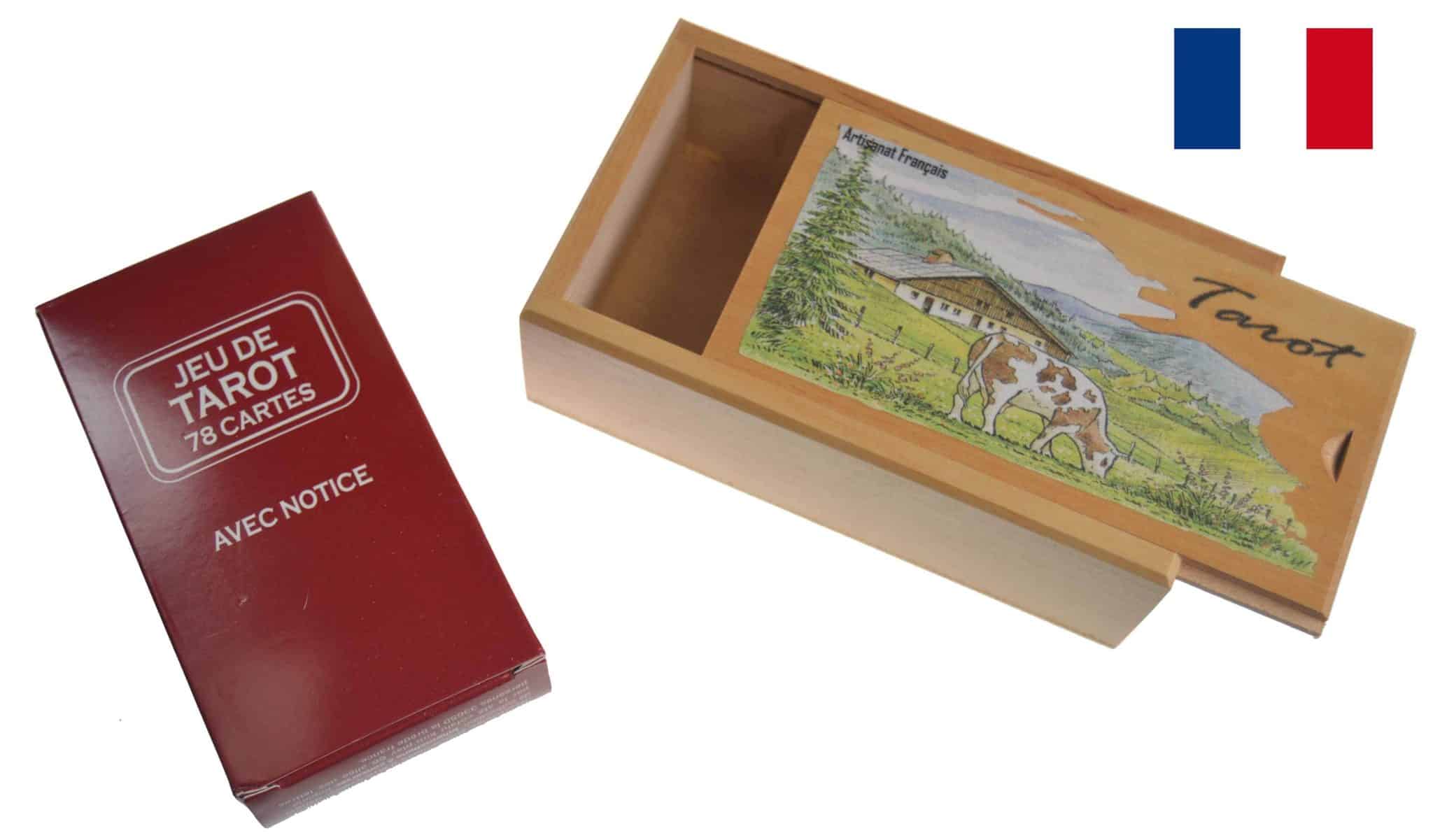 boîte à tarot en aulne dessus massif vernis avec jeu , 10.5 x 7.5 x 4.1 cm DÉCOR “M1”
