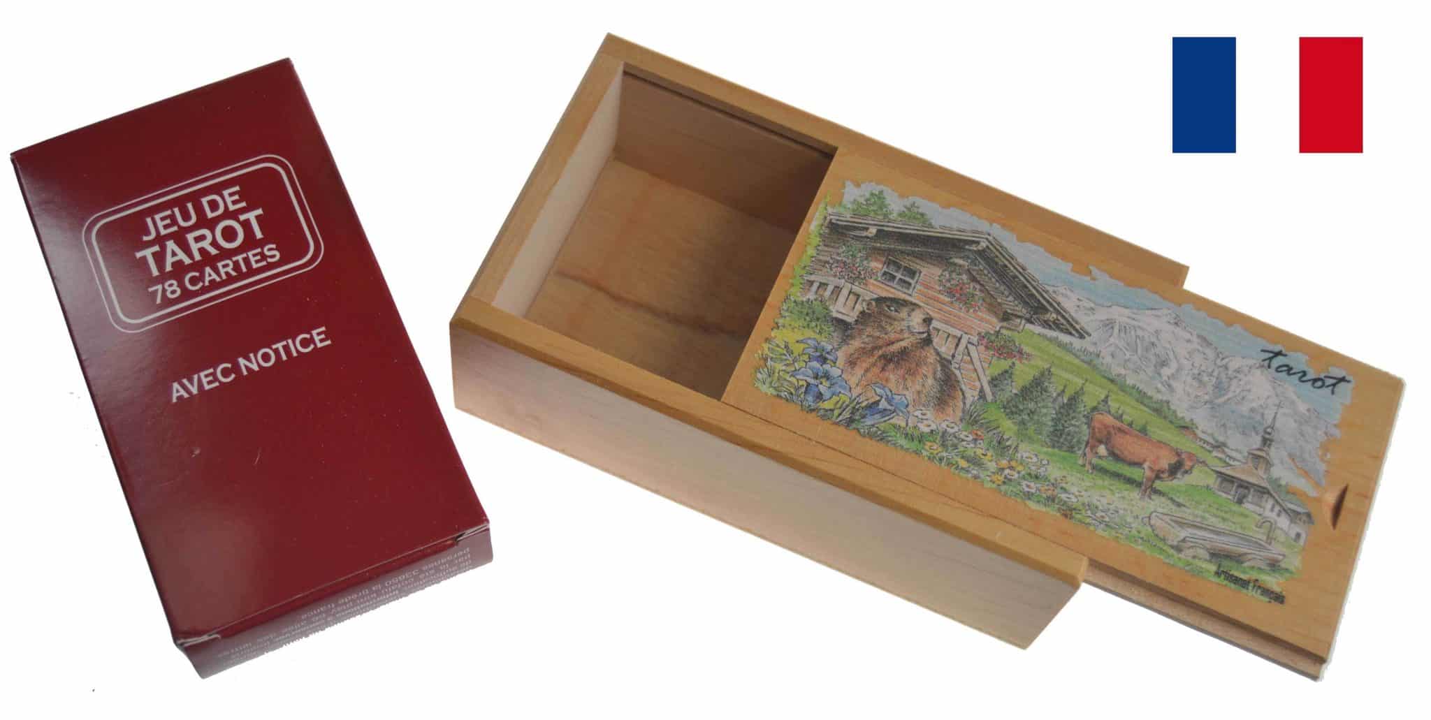 boîte à tarot en aulne dessus massif vernis avec jeu , 10.5 x 7.5 x 4.1 cm DÉCOR “M5”