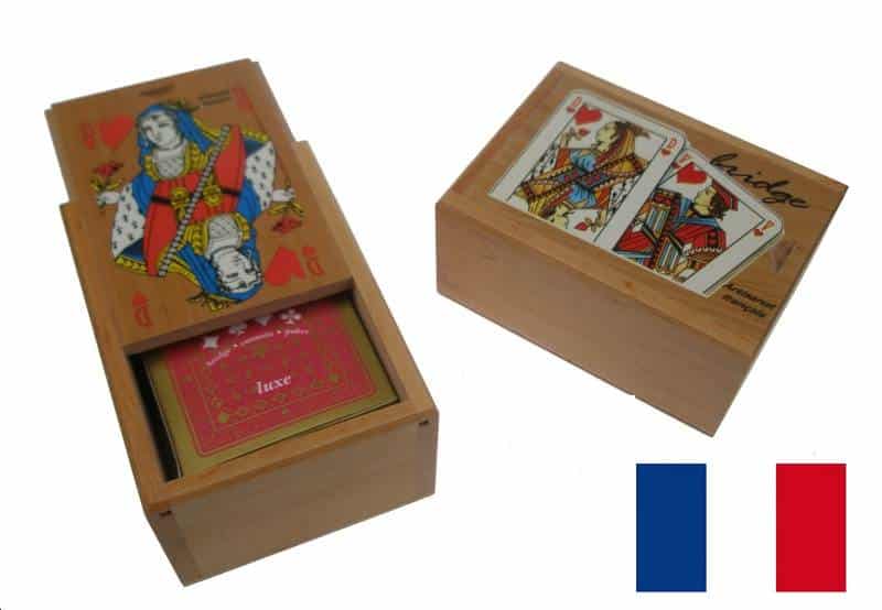 boîte de bridge en aulne décoré vide, 10.5 x 7.4 x 4.9 cm modèle “DIVERS”