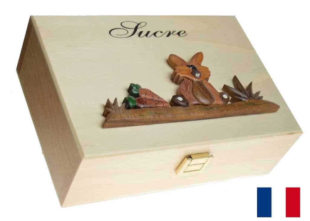 Coffret à sucre, dessus marqueterie, 200 x 142 x 69 mm “MODÈLE LAPIN”