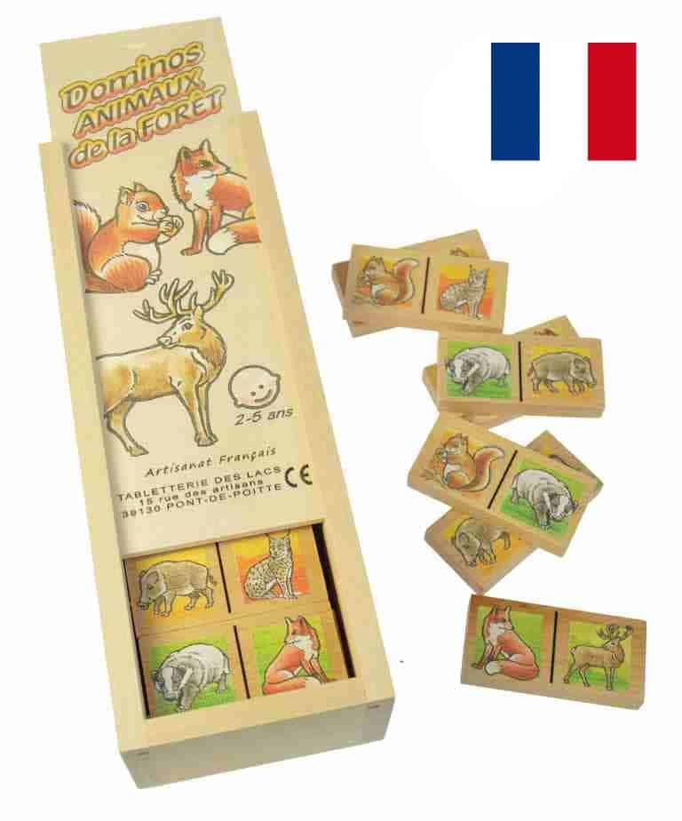 Domino image hêtre vernis ” animaux de la forêt ” De MONTAGNEr” boîte tilleul 23 x 8 x 5.5 cm