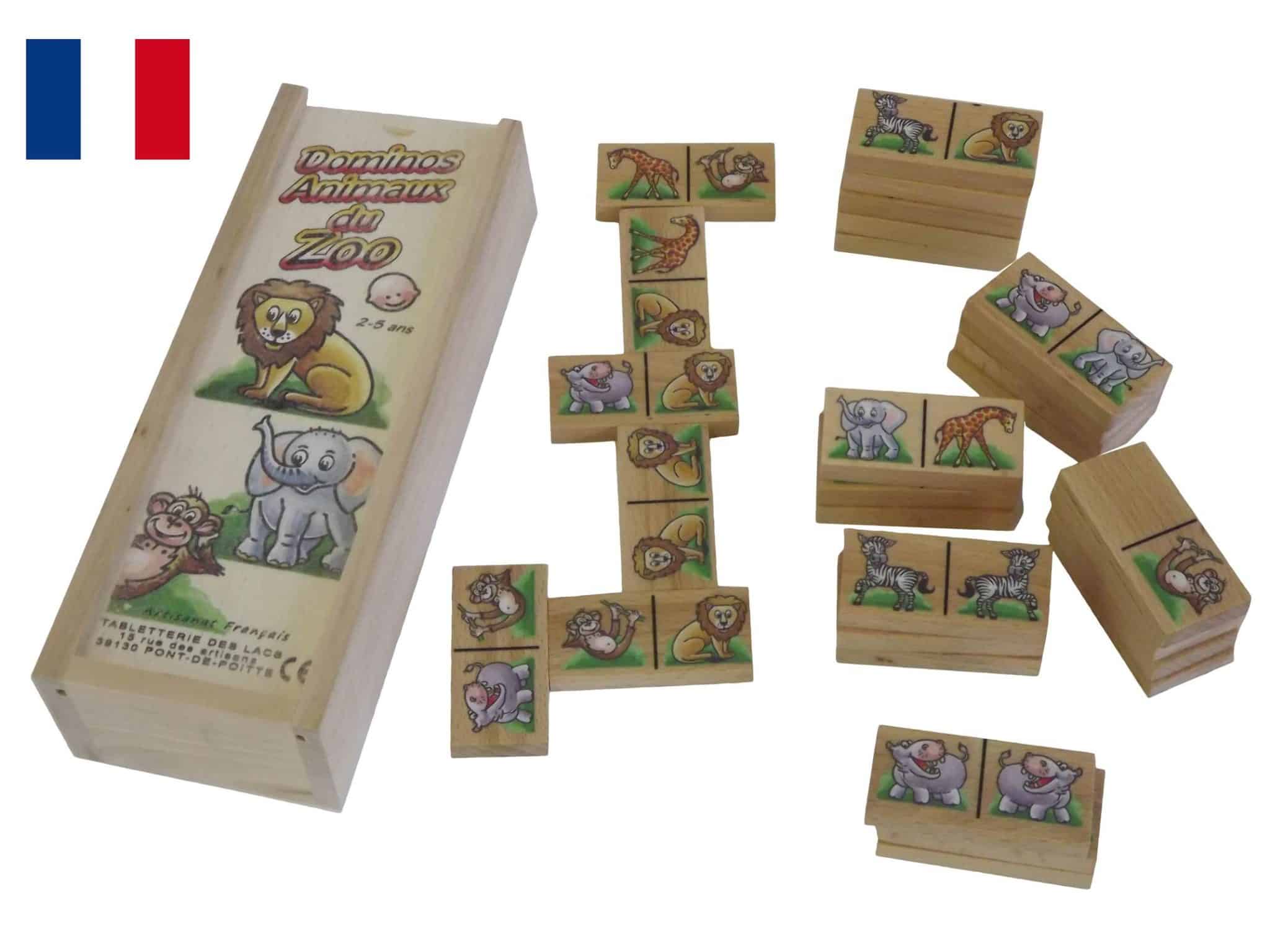 Domino image Hêtre vernis “animaux du zoo” boîte tilleul naturel 23 x 8 x 5.5 cm
