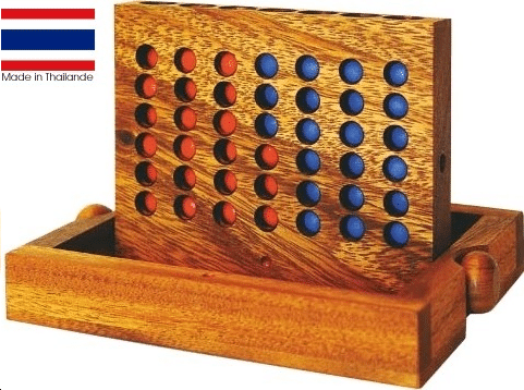 Puissance 4 16 x 13 x 10 cm boite refermable bois de manguier et l’acacia