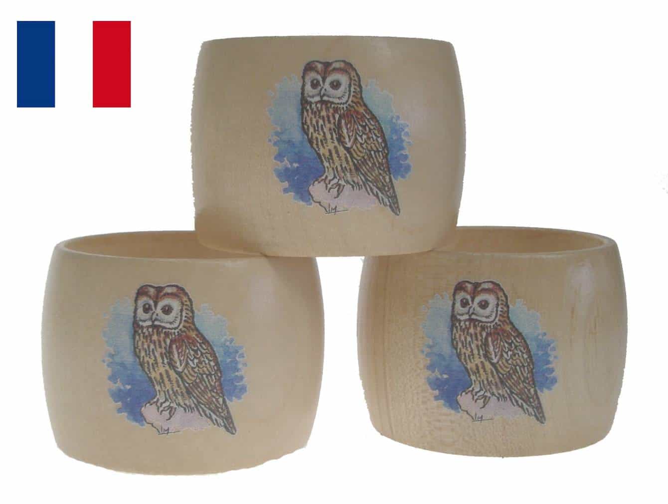 rond de serviette charme vernis décoré diamètre 54 Hauteur 38 mm DÉCOR “CHOUETTE”