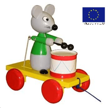Jouet à Tirer en Bois Souris tambourin laqué 190 x 115 hauteur 195 mm