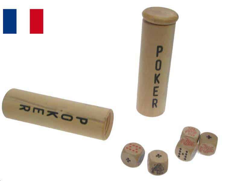Tube poker buis marqué Ht 12 cm diamètre 3 cm livré avec 5 dès poker de 16 mm en érable +notice